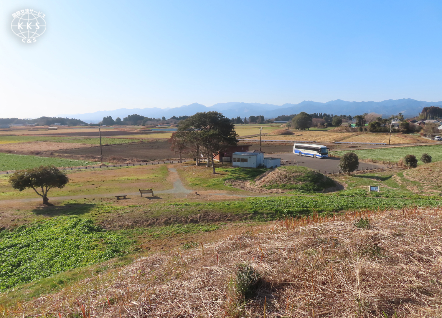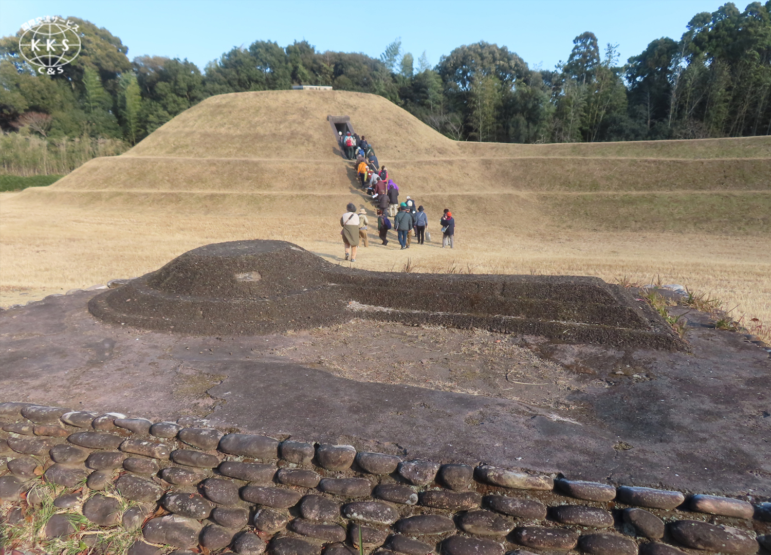 見学地の一部に、ゆるやかな坂道や山道、古墳の斜面、また階段があったり、見学地まで長い距離を歩くことがあります。